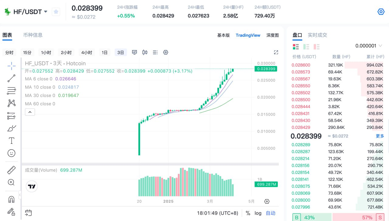 据最新数据显示,HF在过去48小时内价格上涨逾30%,一度突破0.028美元关口,成为本轮金融恐慌中极少数保持上涨态势的资产。这不仅是市场对其基本面价值的认可,更是全球资金对“抗通胀、抗风险、高增长”资产的集体投票。